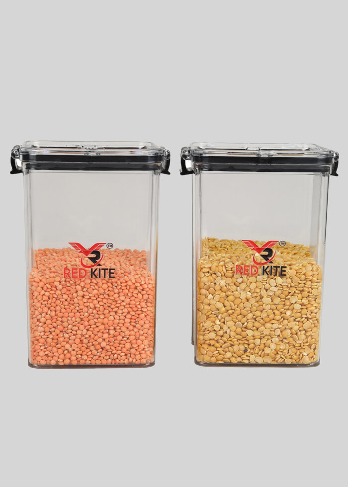 RED KITE Airtight Containers Kitchen Storage Box, Food Storage Container, Stackable & Transparent Organizer Jars, Masala Dabba Container, Set of 2 (1200ml each)