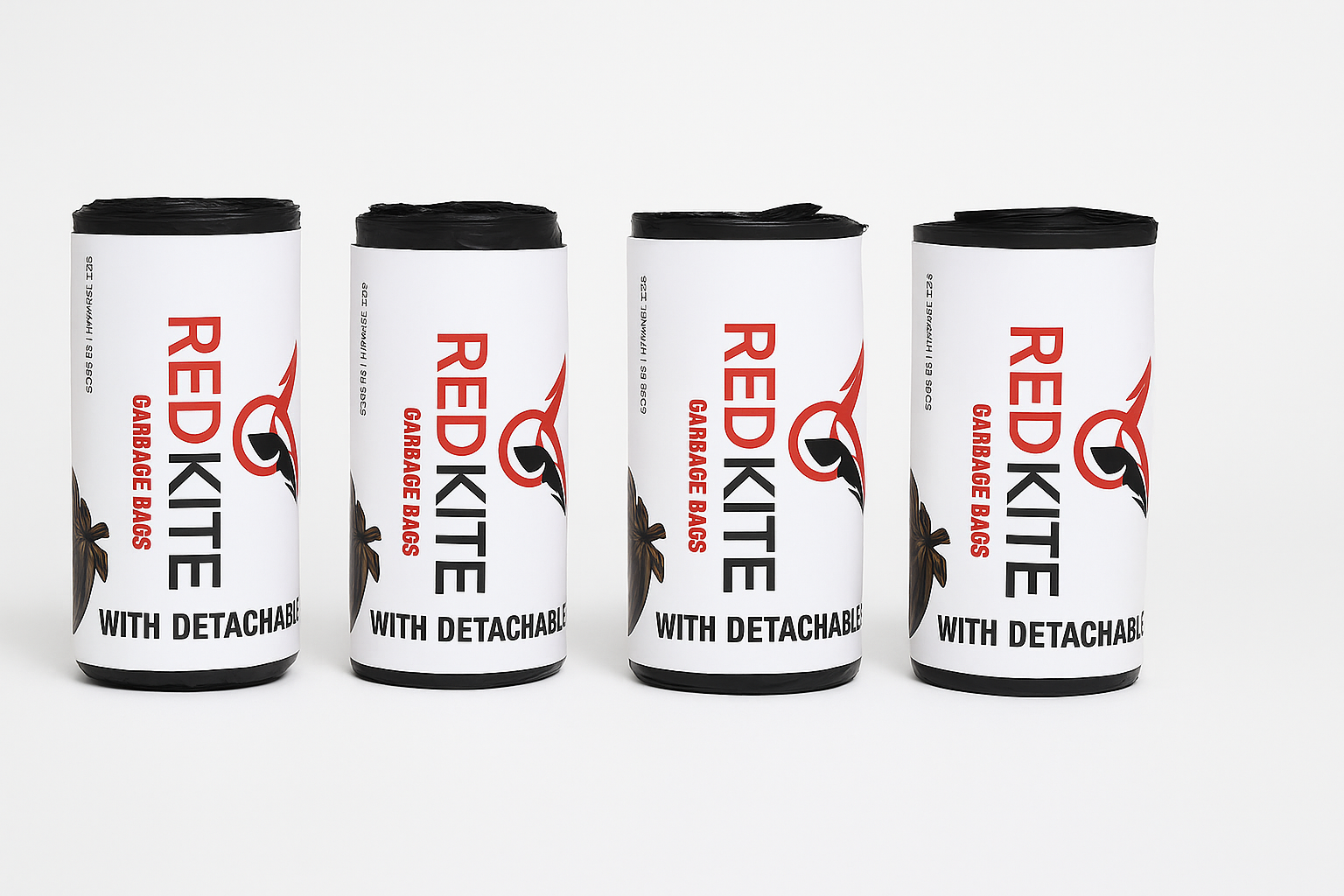 - COMPLETE SET: Pack of 3 Red Kite garbage bag rolls bundled with 100 disposable gloves, perfect for convenient waste garbage disposal bags and hygienic trash handling.